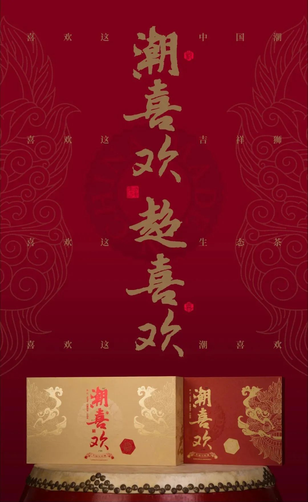 潮喜欢定位为立足当下,接轨时代的新潮中国茶,礼盒设计无处不透露着新意。外盒采用天地盖盒型,天印欢,地印喜,寓意欢天喜地,打开外盒,即能看到扉页中间的“悟”字,寓意喝茶开悟。