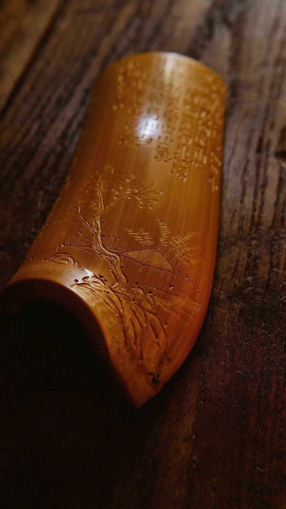 在茶席之中,以壶为王,杯为后,竹木茶器则扮演配角的角色。但是单若谈及竹木茶器,茶则非第一配角莫属。竹材的橫切结构从外而內依序为:竹青-竹肉-竹黃,其中竹青及竹黃都是薄薄一层,竹肉为纤维結构,外层細密硬实不逊于木质。竹肉材质粗而松,故在制作茶道具時尽可能去內留外,方能展現材质之美。“器”,唯有先满足功能需求,才能再谈附加美学!