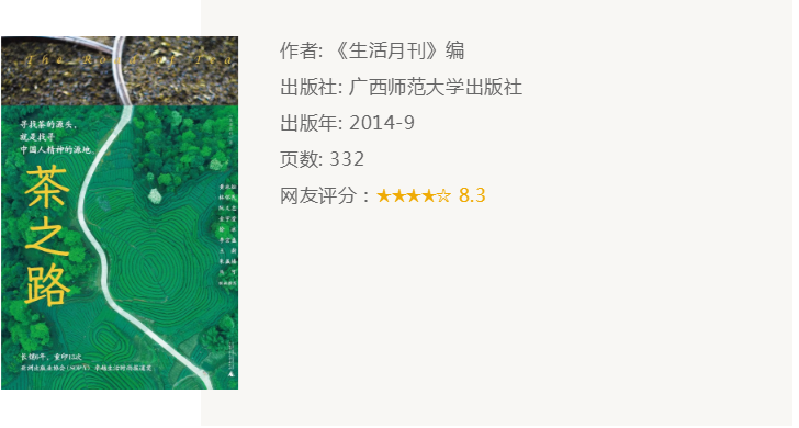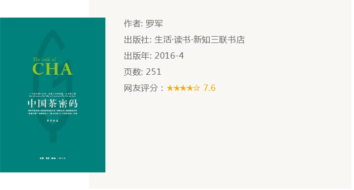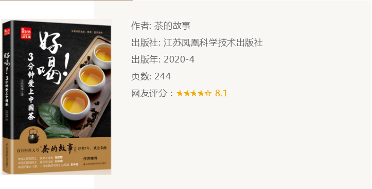 推荐理由:对茶的见解精妙,解读深入浅出,可读性强。探秘中国茶密码,让你对茶的理解发生质的变化。