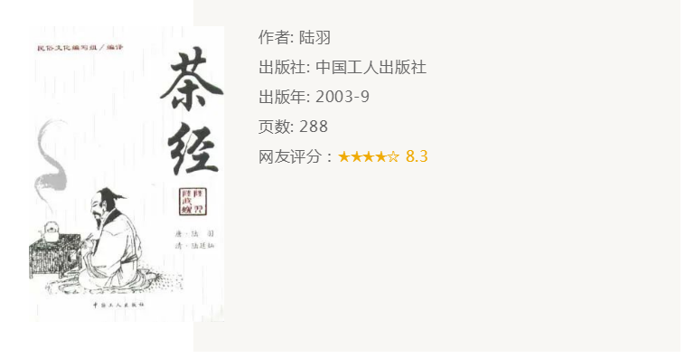 推荐理由:《茶经》是中国乃至世界最早、最完整、最全面介绍茶的专著,被誉为茶叶百科全书。该书是关于茶叶生产的历史、源流、现状、生产技术以及饮茶技艺、茶道原理的综合性论著,是划时代的茶学专著。将普通茶升格为一种美妙的文化艺术,推动了中国茶文化的发展。是所有喝茶的人都绕不开的一本书。