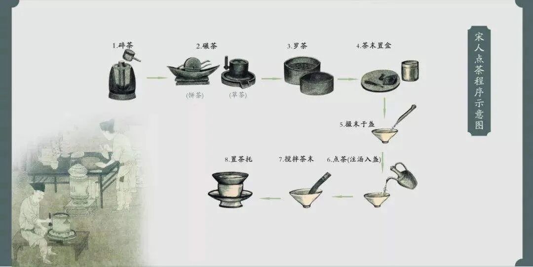 唐之后,宋朝皇帝爱喝茶,宋徽宗赵佶是一个不择不扣的爱茶人。不仅爱喝还写茶书,创作《大观茶论》,率先发起了宋代点茶之风,将唐代茶具中的碗改为盏,用于斗茶,尤以建州窑所产的黑釉建盏最为出名。但由于宋人极其讲求茶具奢华,以金银茶具为贵,宫廷专用瓷器普通人不许使用。这使得当时的茶风过于追求精巧,而背离了陆羽所提倡的自然饮茶原则,这一现象到明代被遏制。