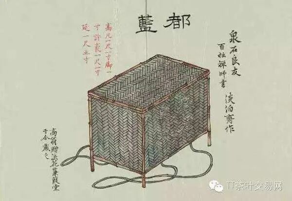 都篮,以悉设诸器而名之。以竹篾,内作三角方眼,外以双篾阔者经之,以单篾纤者缚之,递压双经,作方眼,使玲珑。高一尺五寸,底阔一尺,高二寸,长二尺四寸,阔二尺。