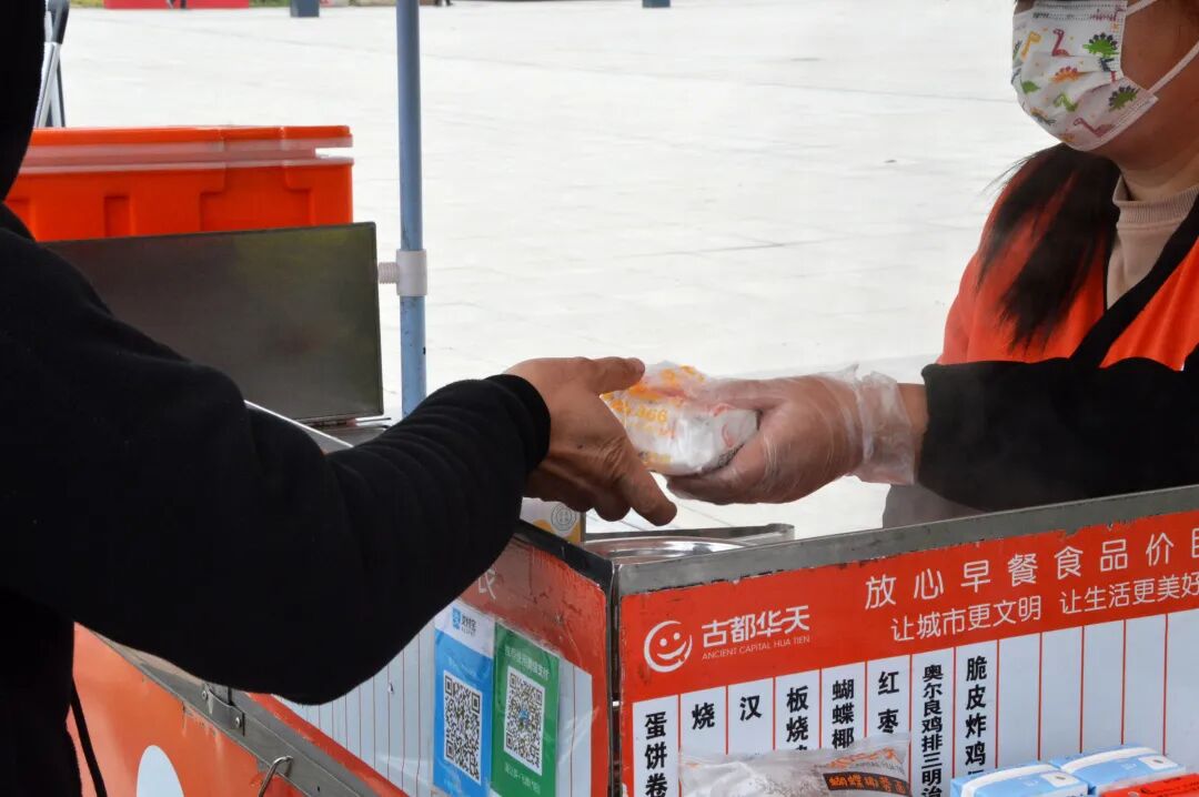 不一会儿,出摊的李女士卖完了包子和夹馍,她告诉小编,放心早餐供应时段从五点到十点钟,制作快速,排队几分钟就能拿到一份热气腾腾的早餐。春寒料峭的早晨,从一份暖心早餐开始。