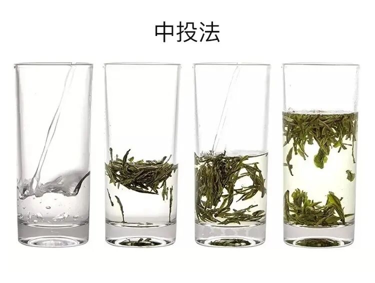 中投法能够减少对茶叶的高温热力和水冲击带来的伤害,但由于绿茶又需要有足够的温度来激发茶中的香气,所以采用“水-茶-水”的投茶顺序,能够很好地焕发茶香。