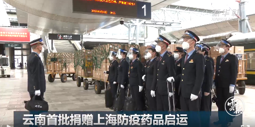 据中国铁路昆明局集团有限公司消息,装有41吨云南省首批捐赠上海市防疫药品的Z288/9次列车1日上午从昆明站发车。