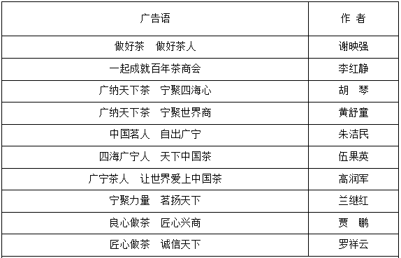 最后通过广州·广宁茶商会常委会评定:一等奖1名(广宁茶商会广告语获得者)
