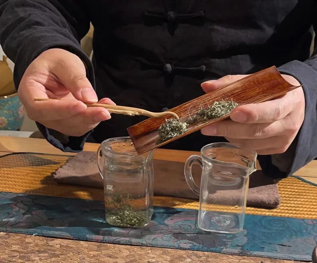 西山岛的碧螺春的花香里,有更浓的枇杷的味道,而东山岛的是杨梅的味道。常喝碧螺春的人,可以区分出东西两山的特点。感兴趣的朋友,可以找一找东西两山的碧螺春对比品饮。我们现在喝第二道汤。注水的速度,一定要控制好。