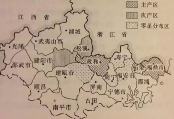 白茶的四大产区为福鼎、政和、松溪、建阳,其中福鼎白茶主要分布在磻溪镇、太姥山镇、管阳镇、点头镇等地。