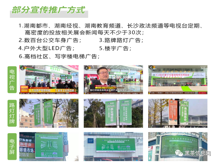2022湖南茶博会将全面整合行业优质资源,协同参展客商、行业协会(商会)举办符合行业发展趋势、参展商推广需求、经销商参观需求的论坛与产品推介品鉴等配套活动,提升展会亮点、看点。采取线上+线下无缝结合的宣传方式,为客商提供个性化、人性化的VIP贴心服务、专业服务;继续打造好作为区域“专业化、品牌化”的茶博会标杆,缔造中西部地区茶行业航母级品牌盛会!
