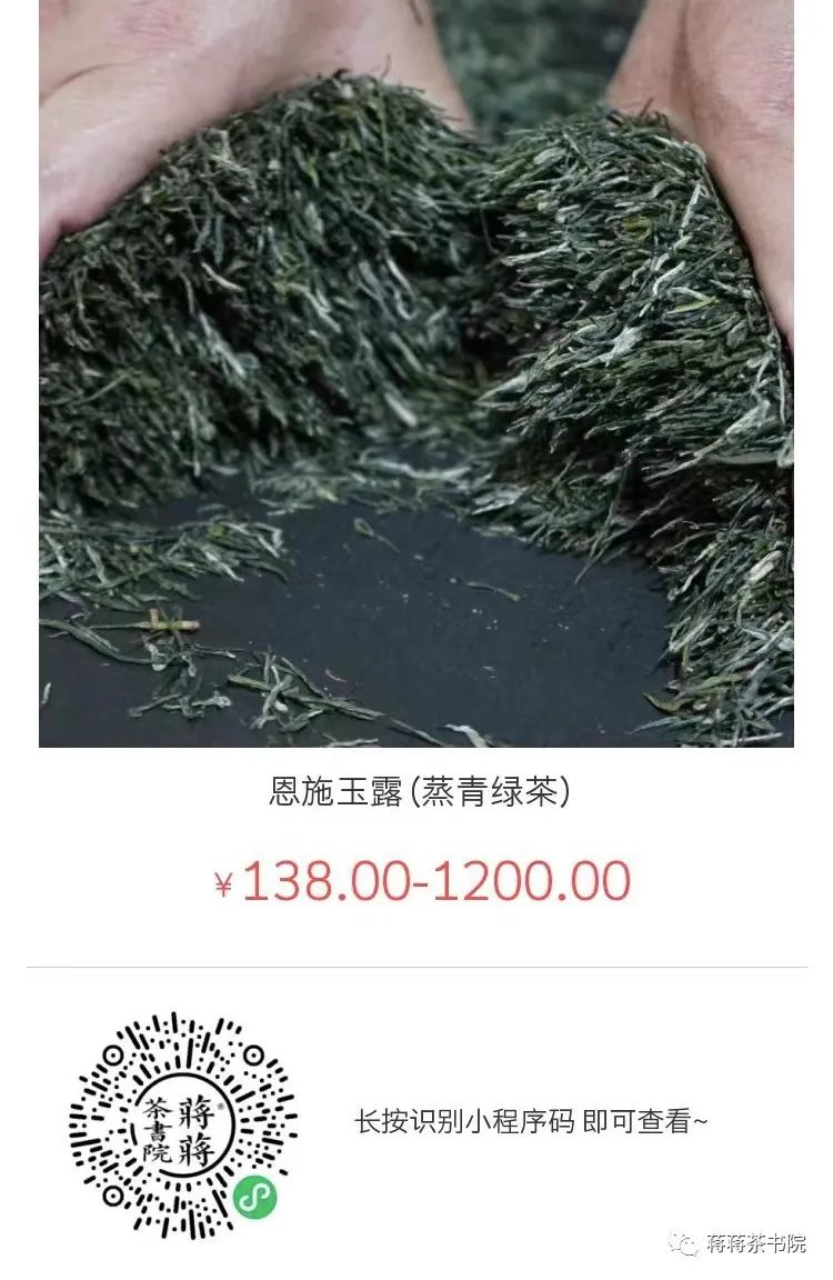 恩施玉露价格品鉴装138元/份一斤装1200元/份(我们在适当的时间,会邀请恩施农科院向老师为大家讲解恩施玉露哦)需要咨询请扫码加【蒋蒋茶书院客服】电话: