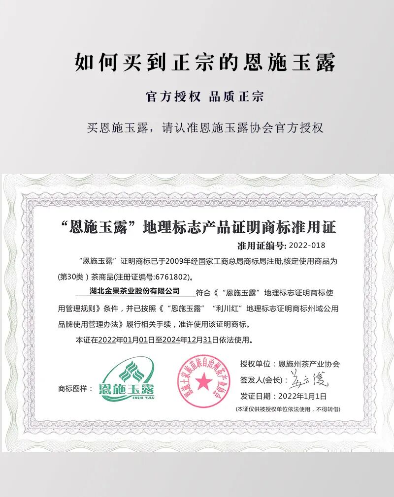 恩施玉露,恩施三大名片之一,恩施玉露又是中国第一蒸青针形绿茶。同时,又是我国历史上保存下来的蒸青针形绿茶。就加工工艺而言,它沿袭唐朝制茶的蒸青工艺,距今已有1000多年的历史。金果·恩施玉露现已全面上市