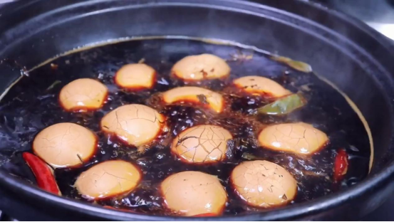 7、在对鸡蛋进行卤煮的时候,我们要用小火慢慢去卤,在小火的持续加热下,鸡蛋才会融入各种料汁的香味。
