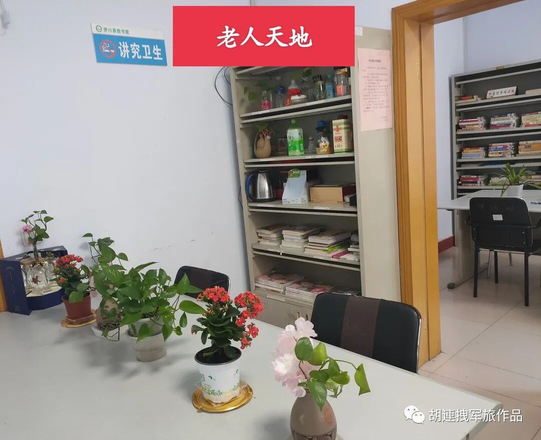 若你是第一次到伊川县图书馆老年阅读之家,或许会对老胡这个“服务生”感到好奇,因他年龄古稀,却还在书房“打卡”,只见他,时而引领读者,时而打理书架,时而护花修草,时而又坐下品味香茶,活托托一个老顽童式的快乐天使。常去阅读的人,早已熟识和习惯了老胡的存在,隔日如看不到他忙碌和习文的身影,还会疑问,今天“胡班长”咋没来呢?