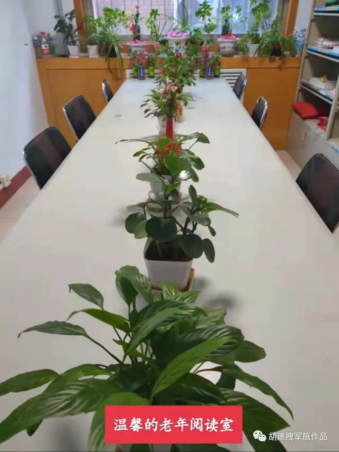 当您走进阅览室,你一定会感叹这里的绿植和盆花养的出奇的好,读者们说,这都要归功于“花匠”老胡。“这是绿萝,那是长寿花,高的是青叶碧玉,矮的是金边吊兰”。他天天对这些花草如数家珍,倍爱有加。