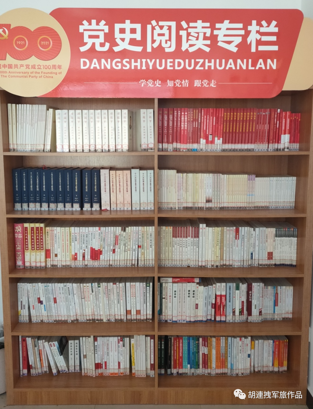 老胡指了指书架上的一排排书刊说:“瞧,这都是我最喜爱的书,在我眼里,它们都是我的精神食粮和写作的指导老师。”我看到,有《成语故事》、《小窗幽记》、《中国历史名相》、《名人传记》、《青年文摘》、《精美散文集》……