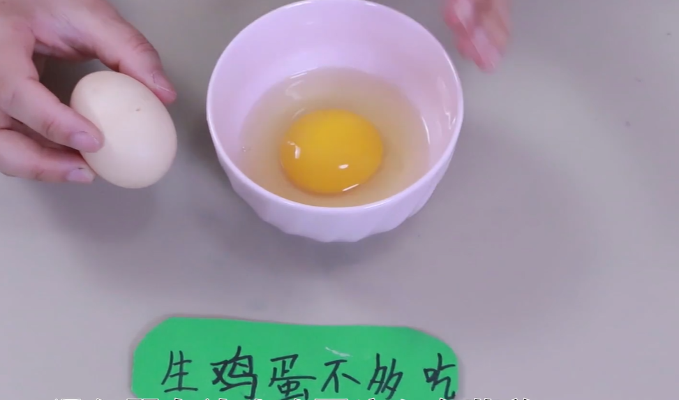 第四,建议大家不要生吃鸡蛋,很多朋友认为鸡蛋这么营养,生吃更有营养,其实这是一种误区,生吃鸡蛋非常的腥,会影响到我们的食欲,同时生吃鸡蛋也是非常不卫生的,因为鸡蛋壳表面有很多的沙门氏菌,大肠杆菌,还有一些鸡粪,我们再敲鸡蛋的时候,鸡蛋清很容易污染到鸡蛋壳,就导致鸡蛋变得非常脏了,还有生吃鸡蛋不利于我们人体消化和吸收,建议大家不要生吃鸡蛋,可以将鸡蛋煮熟后再吃。