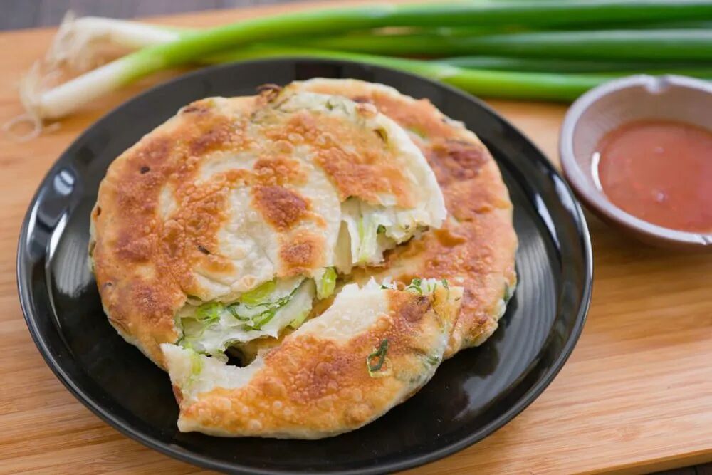 葱油饼来自闽菜或鲁菜,它需要的食材主要是面粉和葱花,刚出锅的葱油饼香气扑鼻,常被当作早餐以及小吃。