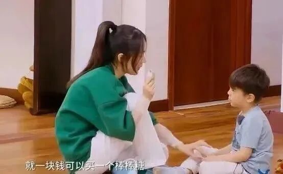 在一档育儿类节目中,儿子嗯哼买东西不付钱,霍思燕发现后,她让儿子一定要付钱给别人,还耐心地教孩子认识钱,告诉儿子钱的基本作用。