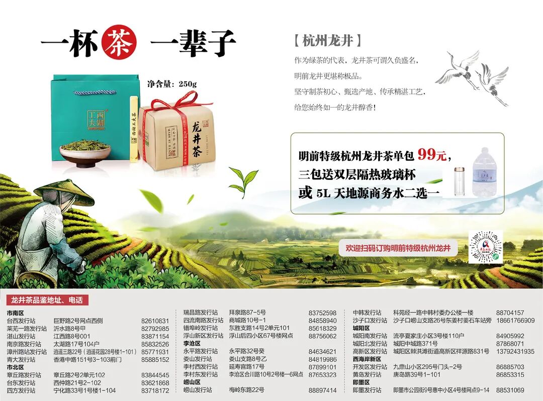 说起西湖工夫牌龙井,与青报发行公司合作多年,在青岛拥有众多品牌追随者。“清香”“鲜甜”“一口鲜”……都是爱茶的岛城人对西湖工夫牌龙井的评价。