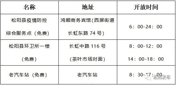 核酸检测采样服务点信息