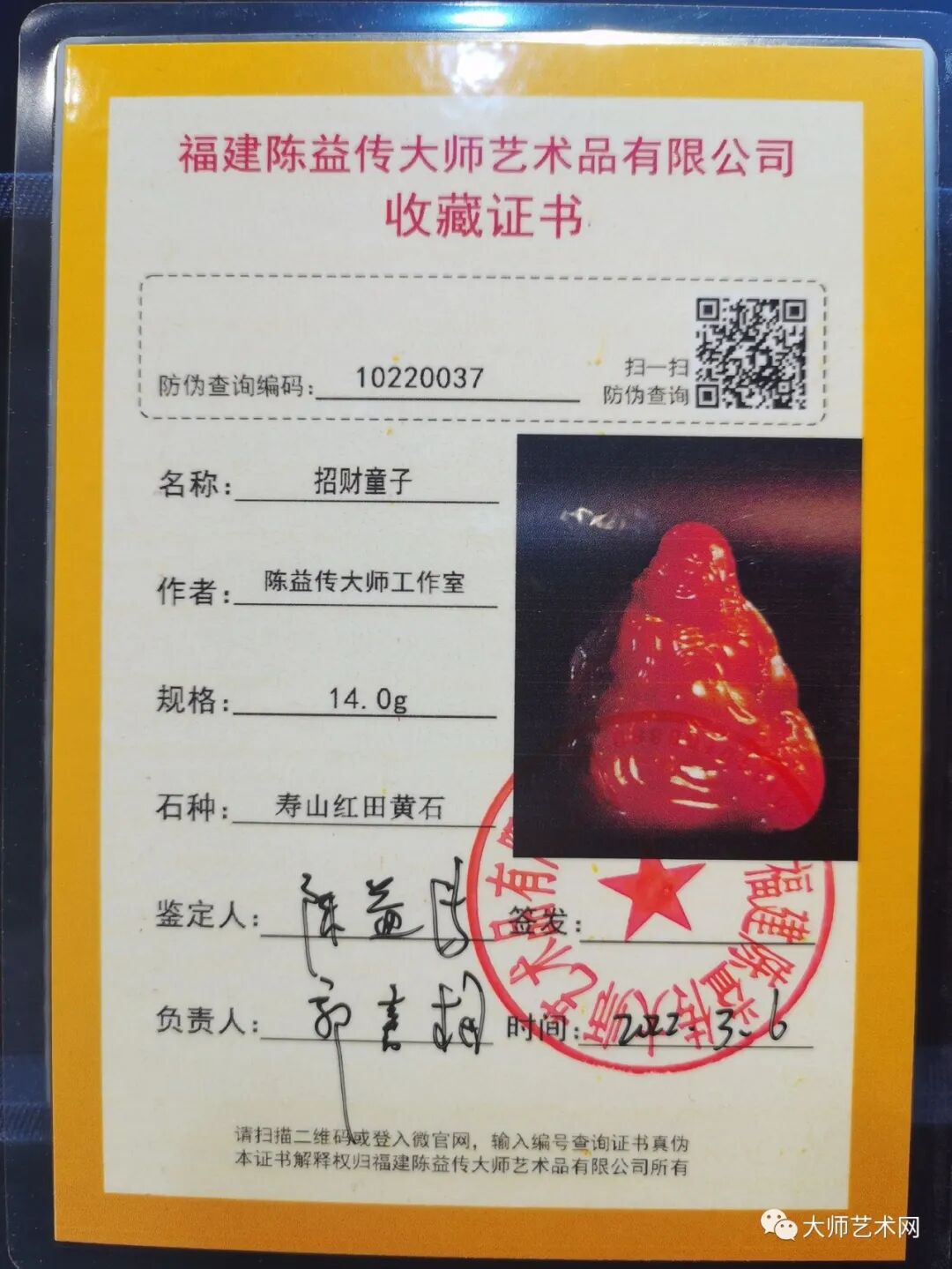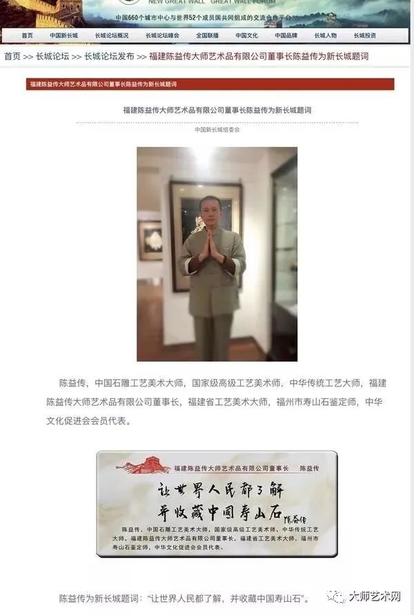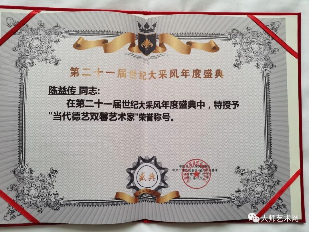 陈 益 传 :福建陈益传大师艺术品有限公司创始人,中国石雕工艺大师,中国当代德艺双馨艺术家,福建省工艺美术大师,中华传统工艺大师,中国石雕青年艺术家,国家级高级工艺美术师,国家级高级传统工艺师,高级(一级)技师,福建省十大杰出青年寿山石雕刻艺术家,福建省海峡书画研究院研究员,中国民协雕刻艺术委员会委员,中华文化促进会会员,福建省工艺美术研究院研究员,福州市工艺美术名艺人,福州市寿山石鉴定师 !