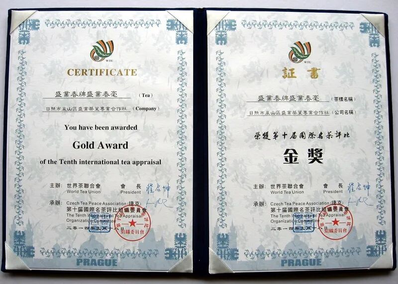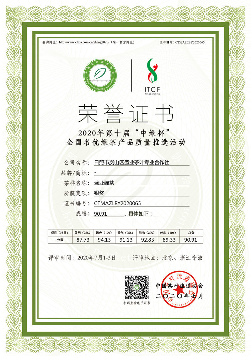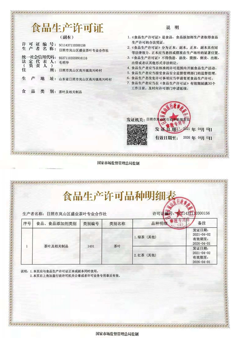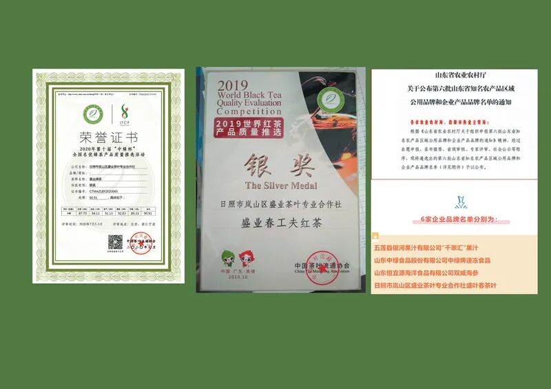 日照市盛业茶业股份有限公司于2015年12月在齐鲁股权交易中心挂牌上市,注册资金140万元。主要生产加工经营卷曲型和扁型等茶叶系列产品。公司现拥有加工车间3200㎡,机器设备 36台(套);引进并安装、调试6CFS—50P清洁化卷曲型有机茶加工流水线两条;公司生产设计能力为每年可生产加工绿茶100吨。公司现有职工36人,专业技术人员15人,其中高级农艺师2人,中级3人;现已发展社员232人,发展基地4000余亩,带动农户3000余户,带动基地面积4000余亩,从而提高了茶叶基地种植水平。公司工艺装备先进,清洁化制茶车间3200余平方米,清洁化加工流水线。公司制茶工艺、机械装备居省内先进水平。公司现已通过了无公害农产品认证、绿色食品认证、SC生产许可认证。先后荣获“山东省林业产业龙头企业”、“市级农业产业化重点龙头企业”、“市级林业产业龙头企业”、“市级守合同重信用企业”、有 “盛业春” “鲁茗一品” 商标,多年来盛业春品牌在各种评比中多次获奖,荣获第一届、第三届“国饮杯”绿茶评比一等奖,荣获第十届“国际”名茶评比金奖,2015年荣获“中茶杯”一等奖,日照市首届斗茶大赛荣获“茶状元”称号,2017年荣获“中茶杯”特等奖。2019年荣获世界工夫红茶银奖,2020年荣获“中绿杯”银奖,2020年日照市茶行业协会荣获科技创新先进单位。
