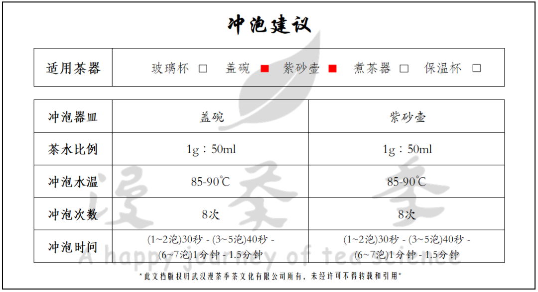 ① 3g投茶量(冲泡器皿为150ml审评杯及200ml审评碗)。