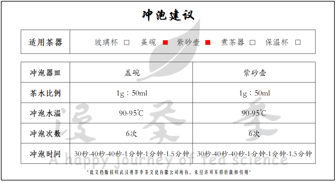 ① 3g投茶量(冲泡器皿为150ml审评杯及200ml审评碗)。