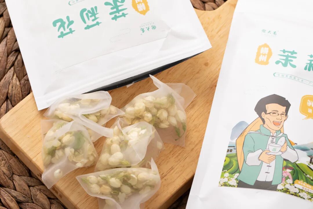 而且每一份茉莉花干都被装入一个小袋子里,一袋一泡,十分便于携带和冲泡。