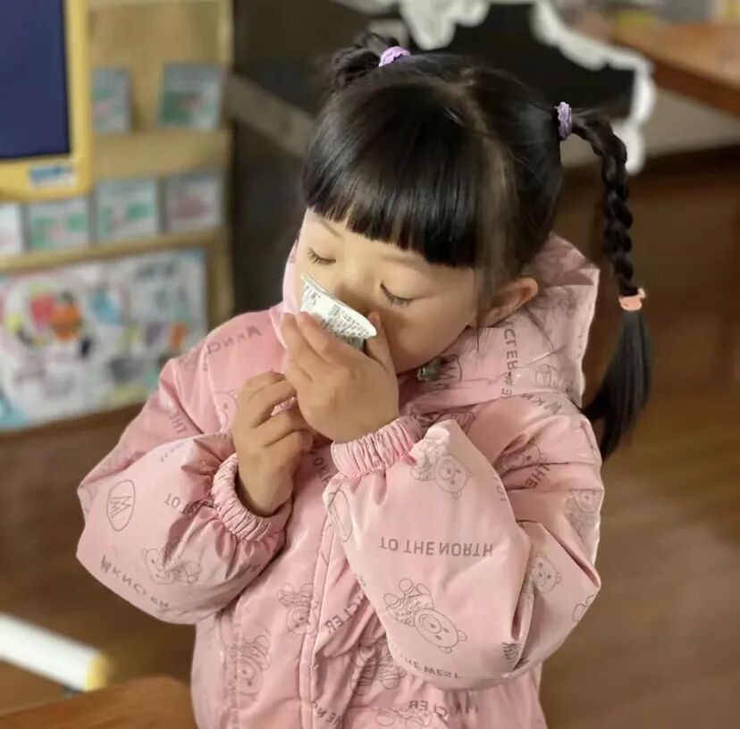 孩子们调查了茶的用途后,发现了茶在日常生活中的广泛运用。我们让孩子们“分享”、“介绍”、再到“闻味”,整个过程都是在满足孩子的探究中自然发生的。这是一次个别经验转化为集体经验的过程。