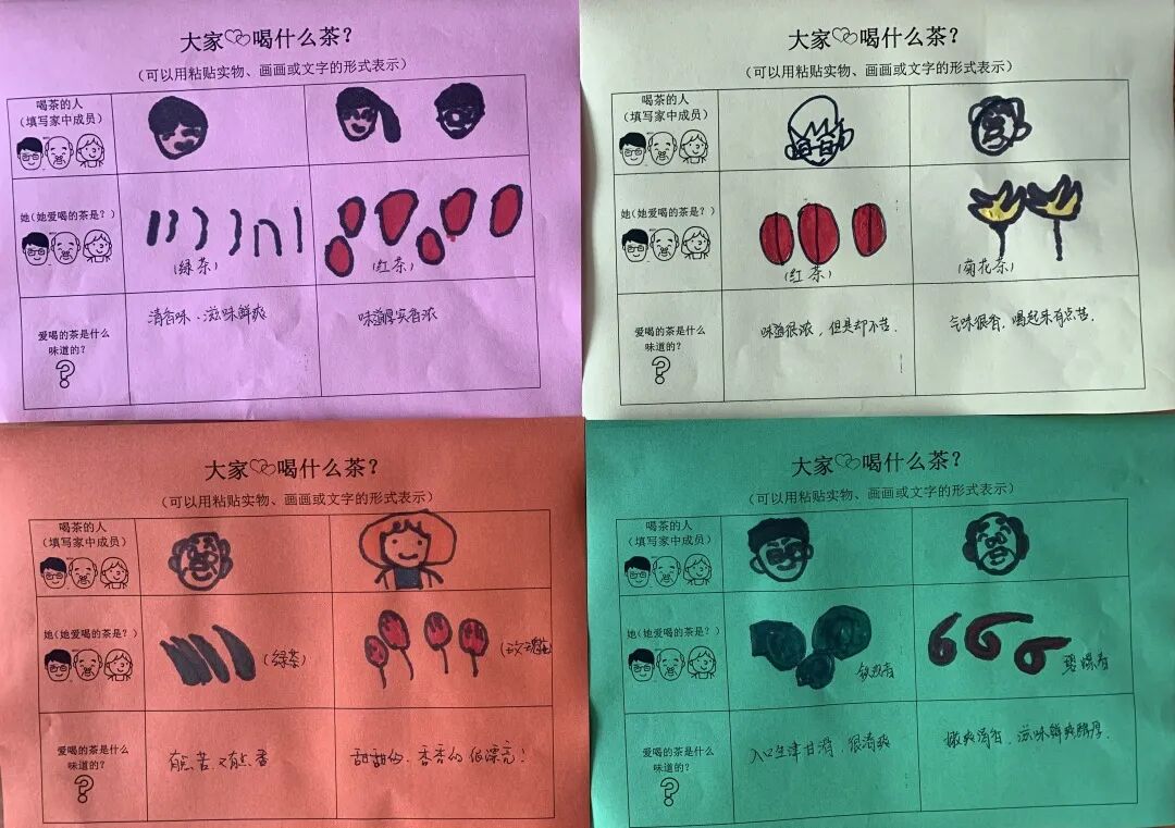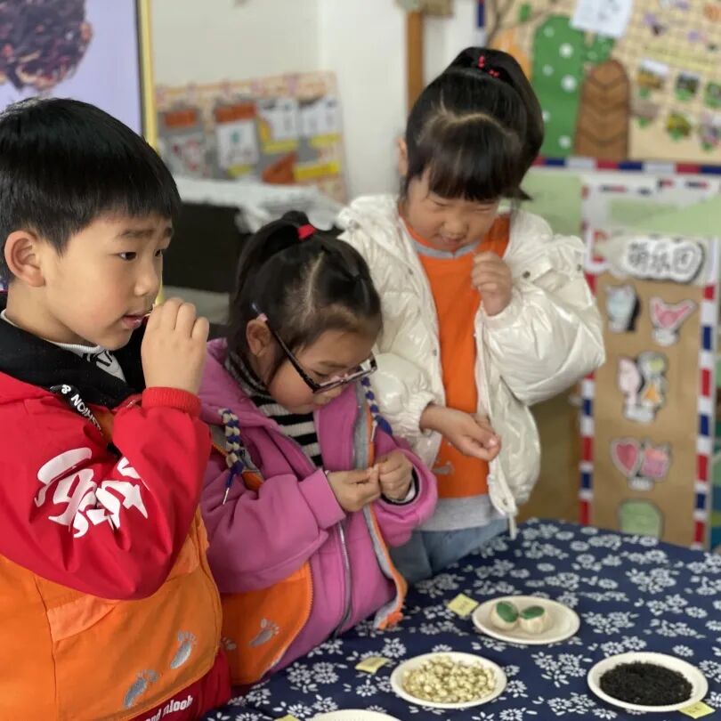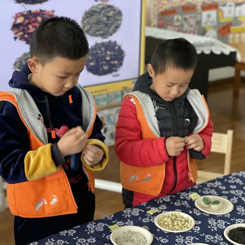 孩子们通过各种感官体验和游戏,加深了对茶的原有认知,他们发现了茶叶的多样性及特点,了解了茶的名称、颜色、形状、触觉、味道和产地。