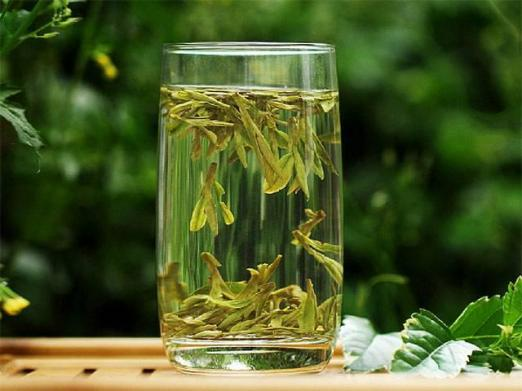 绿茶泡开之前有点弯弯的,卷卷的,在泡开之后变成扁扁的一片片大大的叶子。