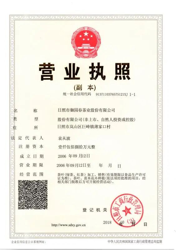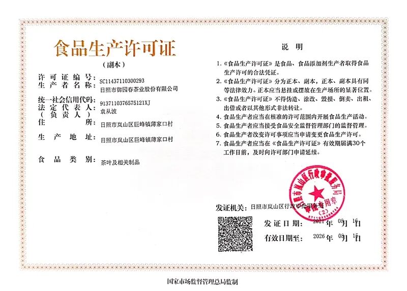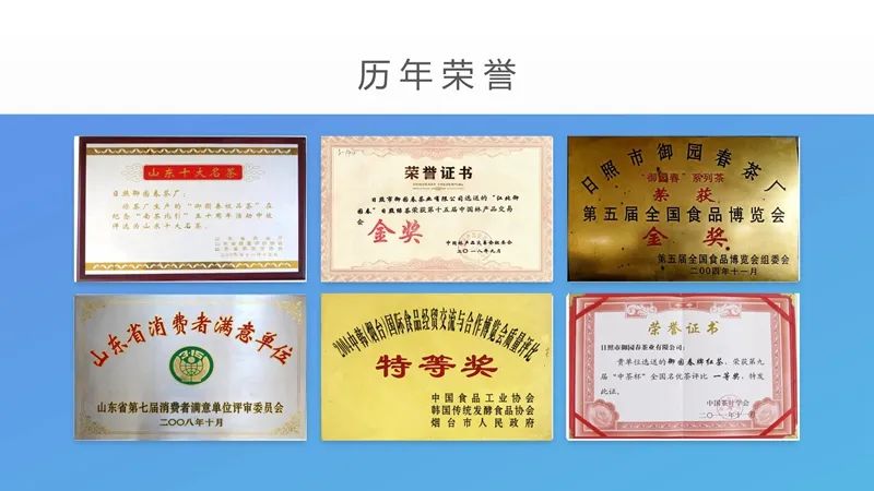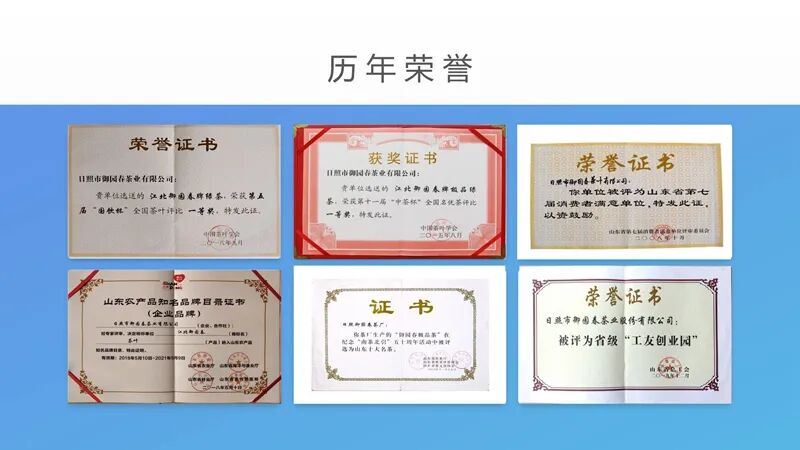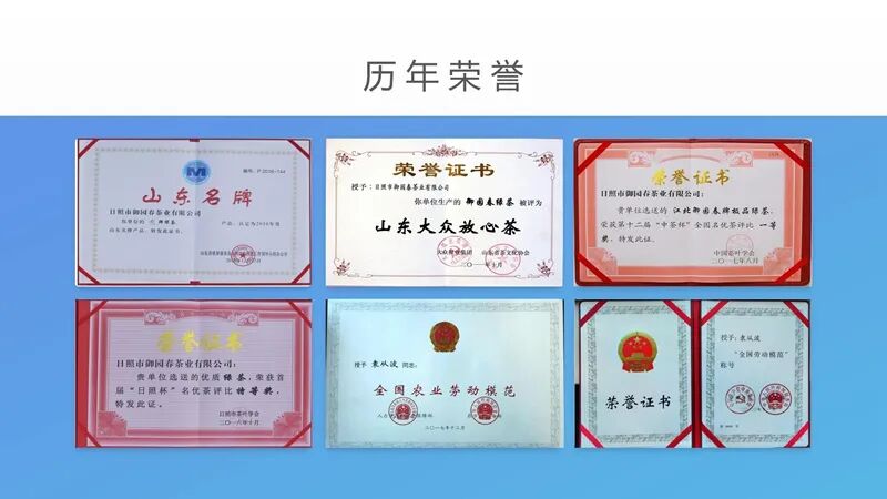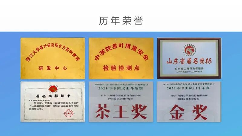 企业信息企业名称:日照市御园春茶业股份有限公司企业地址:日照市岚山区巨峰镇薄家口村企业联系:0633-企业介绍: 日照市御园春茶业股份有限公司创建于2004年,现已发展成为一家集种苗繁育、销售,茶叶科研、加工、销售、观光旅游于一体的省级农业产业化重点龙头企业。 公司自创建以来,不断加快科技创新步伐,始终坚持实施“品种、品质、品牌、品位”四品发展战略,不断加快“茶园环境生态化、茶园管理标准化、茶叶加工清洁化、茶叶产品品牌化”四化建设步伐,取得了良好的经济效益、社会效益和生态效益,促进了企业的健康发展。 公司现已通过ISO9001:2000质量管理体系认证和无公害农产品认证以及有机食品认证;公司先后荣获“山东省名牌产品”、“山东省著名商标”、“山东省消费者满意单位”、“山东省农机化创新示范工程茶叶机械化示范基地”、 “山东省引进国外智力成果示范推广基地”、 “山东省老科协农业科技项目示范基地”、“山东省茶文化优秀企业”、“山东省农业产业化重点龙头企业”等荣誉称号;产品获得“山东十大名茶”、“中茶杯”全国名优茶评比一等奖、中国茶叶学会“五星名茶”等奖项;公司董事长袁从波,日照市人大代表,先后荣获“日照市乡村之星”“山东省劳动模范”“全国农业劳动模范”,2020年又荣获“全国劳动模范”受到党和国家领导人的接见。