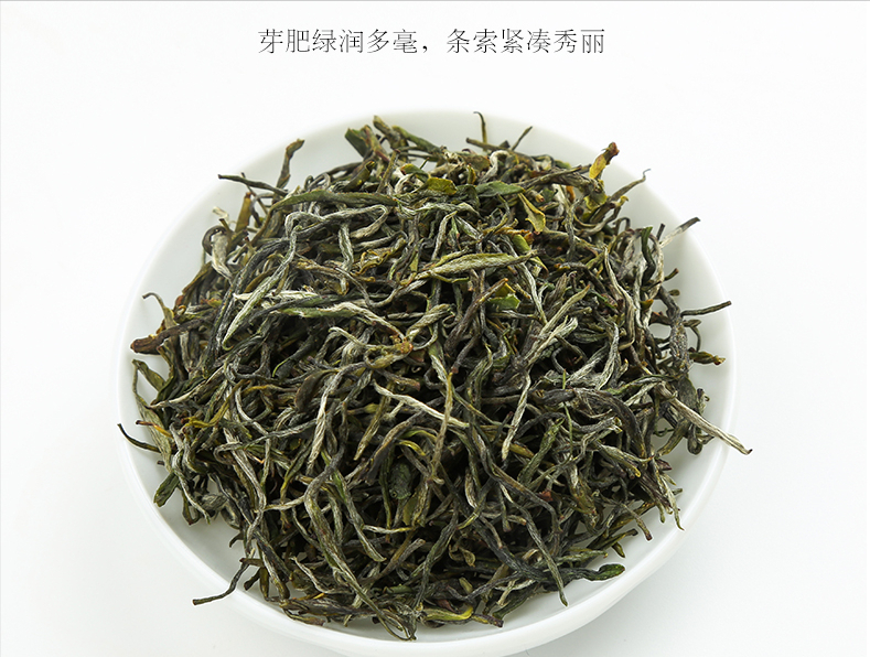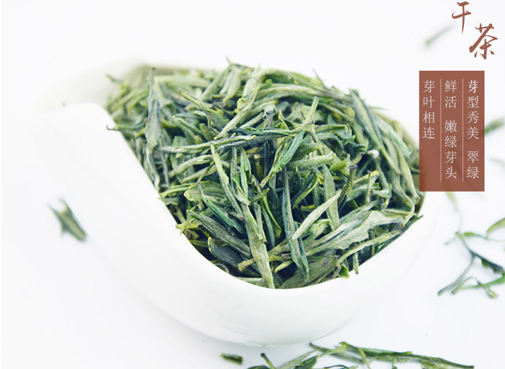一芽两叶,芽叶相连,自然舒展,形似兰花,色泽翠绿,质地鲜嫩,香气扑鼻,毫芒显露,嫩香持久,滋味醇浓鲜爽,汤色浅绿明亮。