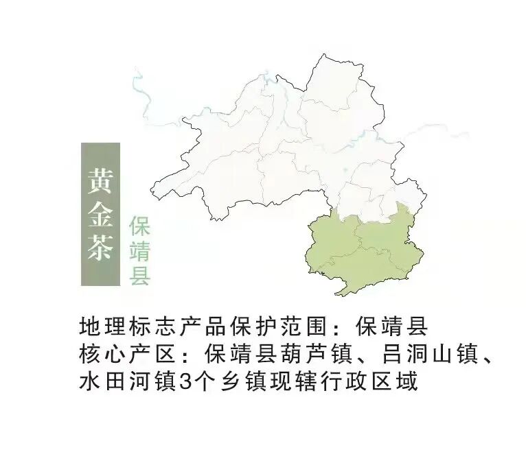 黄金茶已经扩张到湘西全境,但是要说保靖黄金茶,它的地标信息指定的核心产区只集中在湘西自治州保靖县的夯沙乡(现在合并入吕洞山镇)、葫芦镇、水田河镇3个乡镇现辖的行政区域。