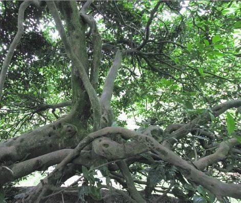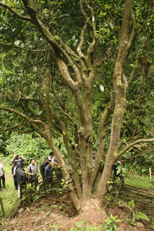 位于黔西南普安林场的古茶树被中茶所虞富莲老师鉴定为最古老、最大的四球茶树,也是目前最大的野生古茶树居群,是珍稀的古茶树资源,在茶树起源、演化和分类研究上具有重要的学术价值。树高9米,冠幅9米,周长1.7米