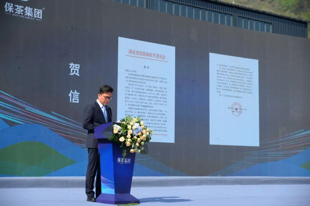 投产仪式上,中国茶叶流通协会会长、全国茶叶标准化技术委员会主任委员、中国食品法典委员会专家委委员王庆,中国工程院院士、湖南农业大学教授、中国茶叶流通协会副会长刘仲华,湖北省农业农村厅党组成员、副厅长项克强,襄阳市政府党组成员、副市长张学林先后致辞。活动还宣读了湖北省发改委就“襄阳高香茶”全球智能化生产线在保康投产发来贺信。保康县委常委、常务副县长张祖涛同志就保康茶县域公用品牌授权管理运营,为保康县茶产业联合会授牌;保茶集团董事长肖德雄介绍了投产项目情况。