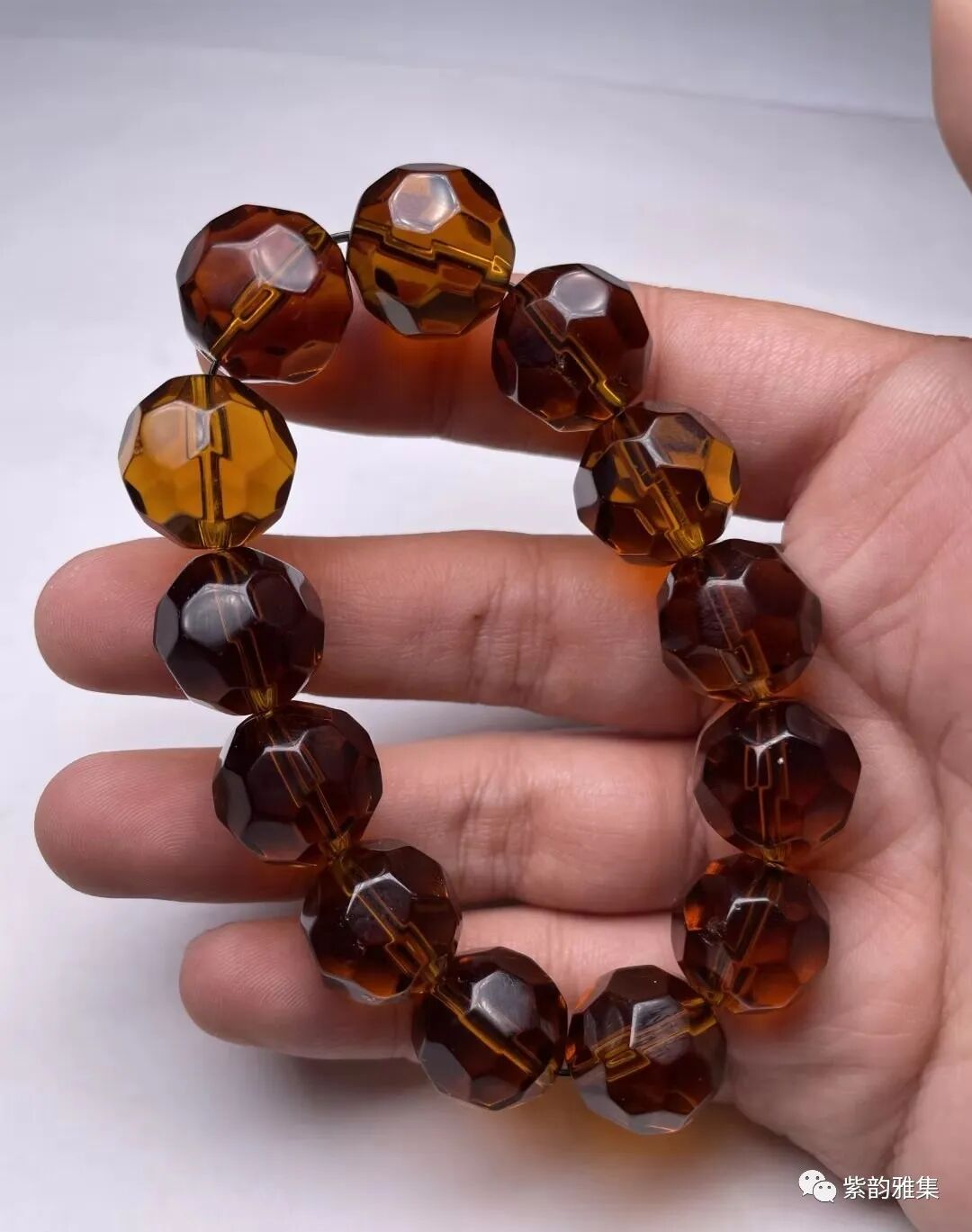 维多利亚时期茶晶手串,包浆厚重,光气十足,精美的切割工艺,年份到位。