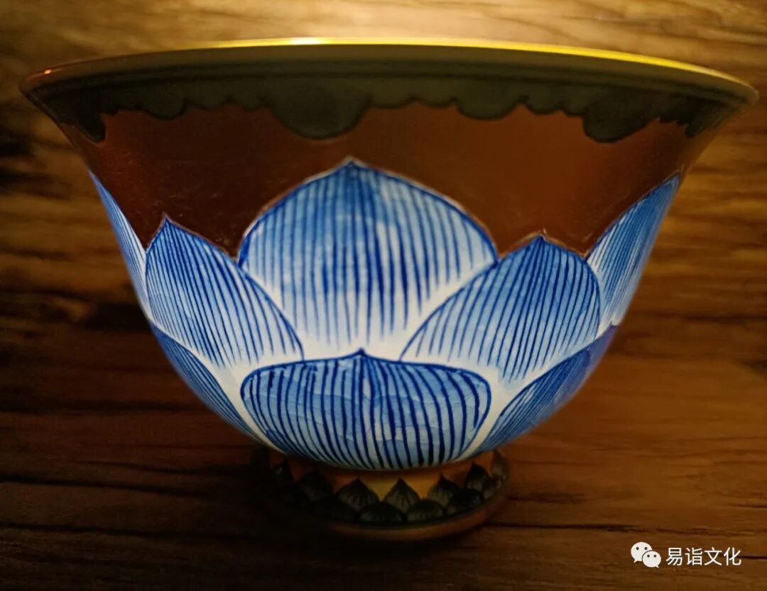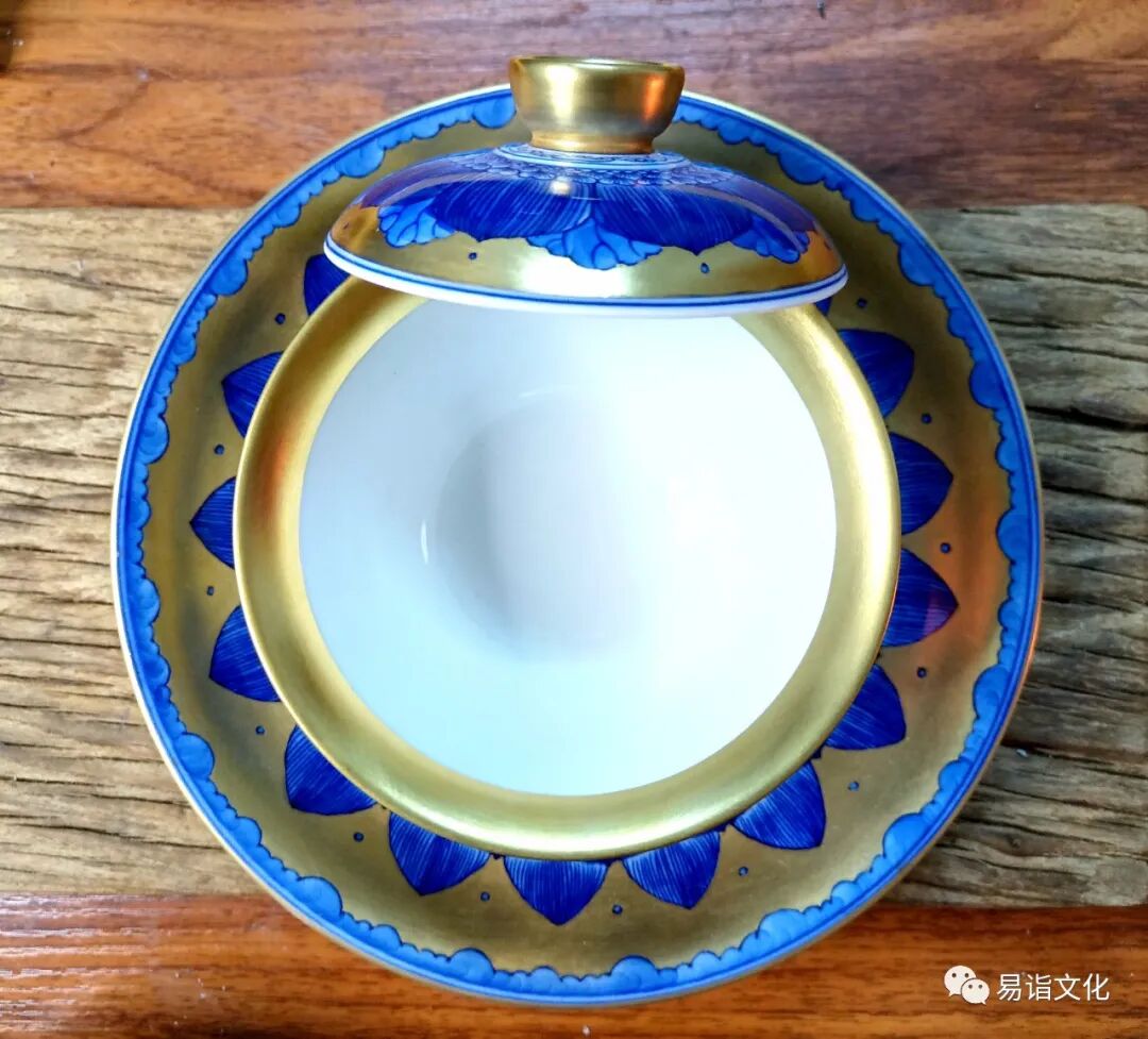 “青花瓷描黄金”莲花盖碗的透光度