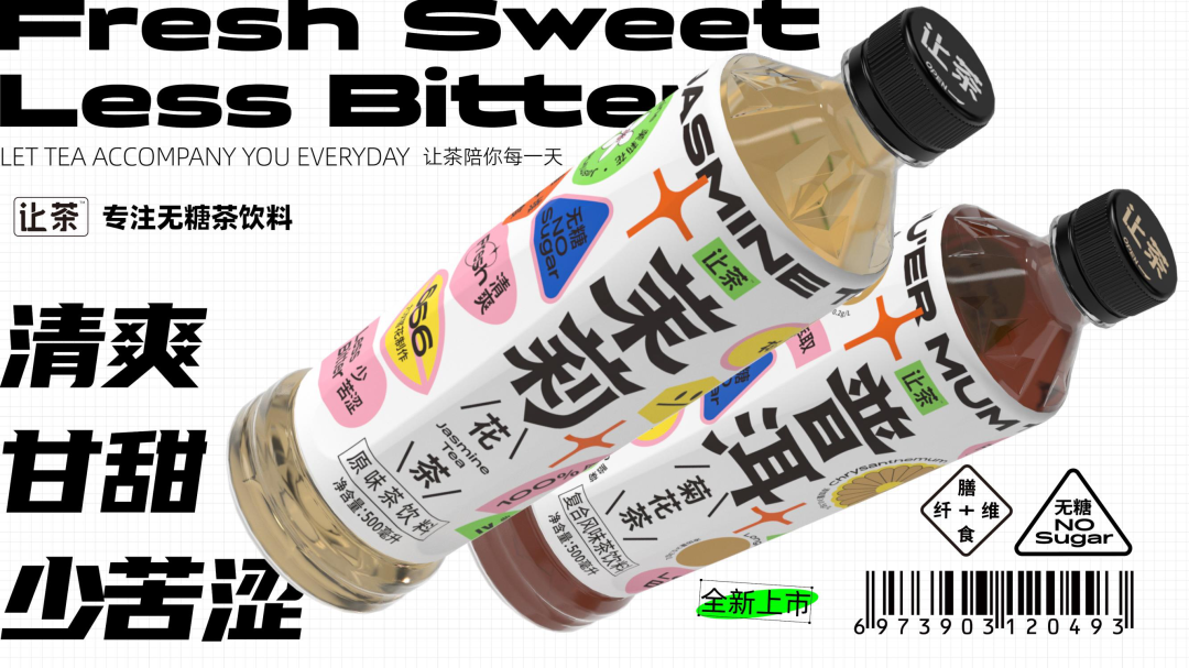 让茶·草本系列以东方草本为灵感,以花入茶,清爽甘甜少苦涩,引领无糖茶口感新突破!并巧妙融合膳食纤维,0糖0脂0能量不添加防腐剂不添加⾹精。甄选高山茶,100%原叶茶萃取。其中,茉莉花茶特别添加了六窨茉莉花茶茶叶,花、茶配⽐3:2;普洱菊花茶精选杭⽩菊、胎菊、桂圆、枸杞等7种自然植物⻝材。同时,产品包装设计致敬经典的“配方”形式,将草本系列的原料和配比解构,以年轻化的视觉风格呈现。