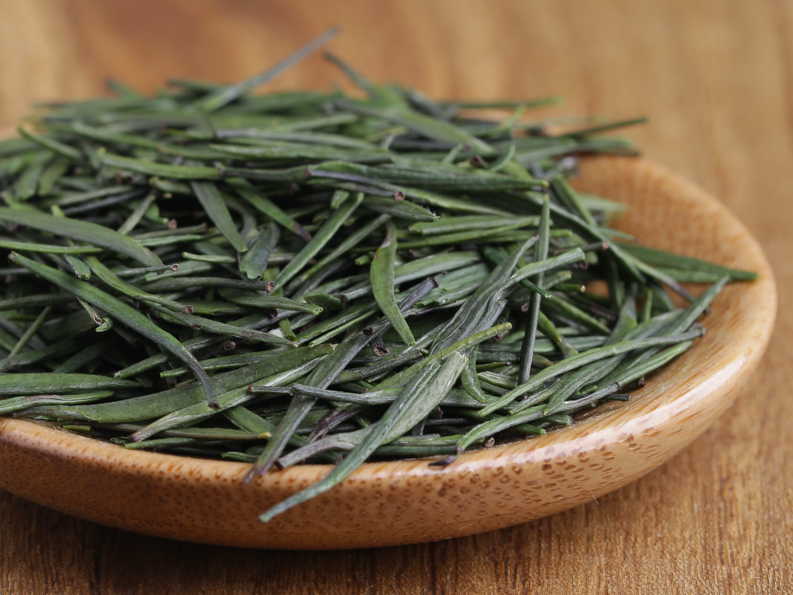 蒙顶石花,产于四川名山蒙山,是一种扁直形的烘炒绿茶。其造型自然美观,冲泡后芽头舒展,形如山石上的石花。