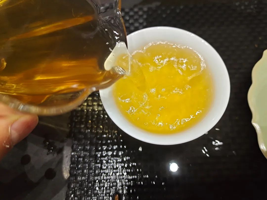 投茶8克,烟蜜香融在汤中,入口甜润度高,非常适合新茶友品饮;投茶10克,杯底烟蜜香馥郁成团,汤感饱满,苦涩携裹着强劲冲击力,颇有几分班章韵,平时喝布朗山系普洱茶比较多的老茶友也给予了一致好评。