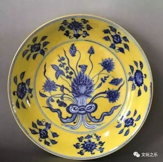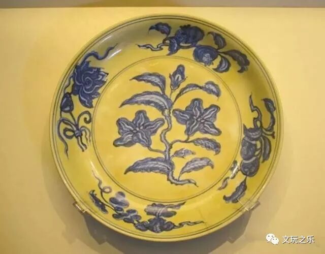 《明黄地青花折枝花果纹盘》 故宫博物院藏