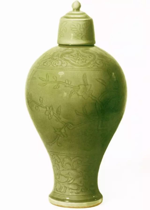 明早期龙泉窑青瓷刻划花桃竹图梅瓶,通高44.9厘米,北京故宫博物院藏
