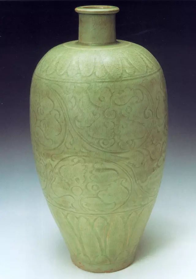 南宋早中期龙泉窑青瓷刻划花缠枝牡丹莲瓣纹梅瓶,高35厘米,浙江松阳县古市镇出土