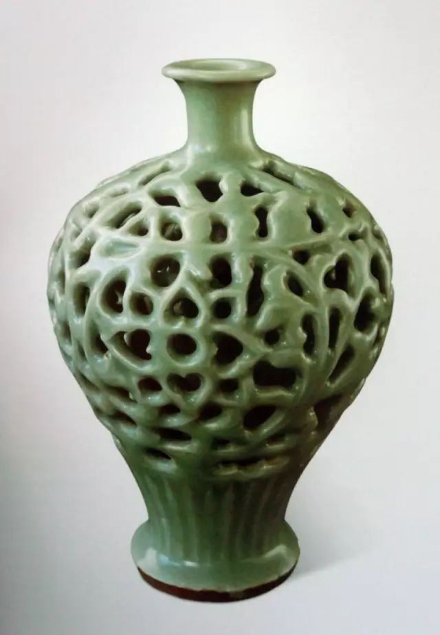 明龙泉窑青瓷镂空缠枝花卉纹梅瓶,高19厘米,甘肃华亭县出土