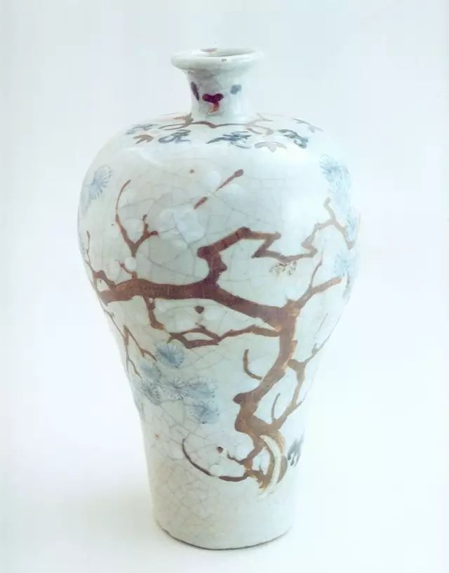 明万历景德镇民窑仿哥釉斗彩雪松寒梅图梅瓶,高30厘米,广西壮族自治区博物馆藏