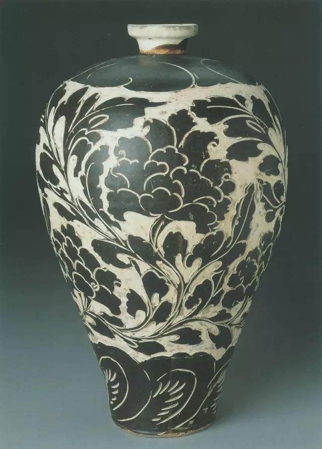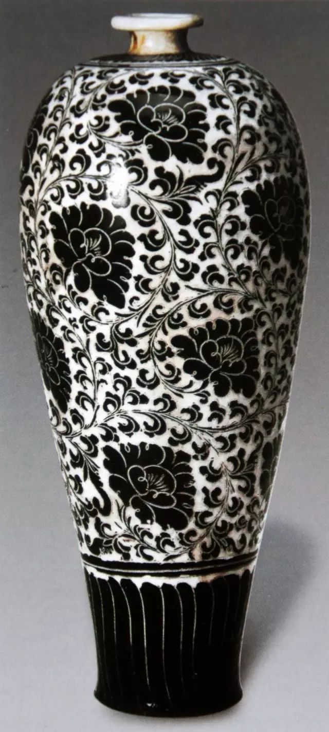 北宋晚期白地黑剔花缠枝纹梅瓶,高58厘米,日本芦屋山口谦四郎藏
