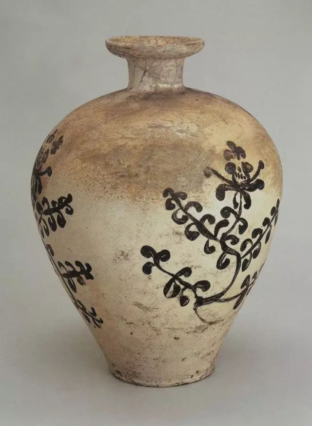 金山西窑场白釉黑彩画花折枝牡丹纹梅瓶,高38.3厘米,上海博物馆藏