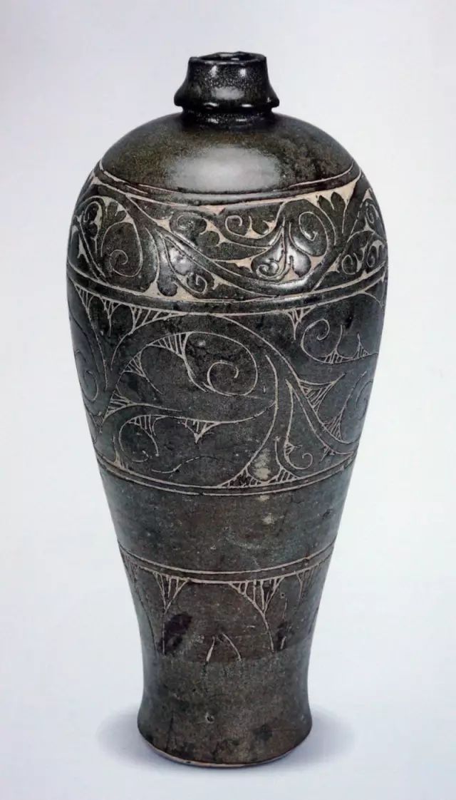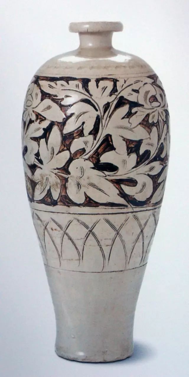 子仁认为,这种装饰特点背后的原因有两个:两宋时期的生活起居方式和室内家具产生变化,即从唐人的席地而坐转变为桌椅等高足家具,使得梅瓶的陈设位置产生变化。梅瓶的肩腹部是主要的视觉接触面,因此也就成为装饰的主题纹饰所在区域。